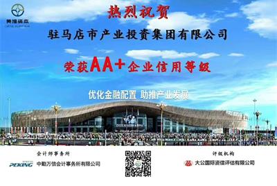駐馬店市產(chǎn)業(yè)投資集團有限公司 喜獲AA+主體信用評級